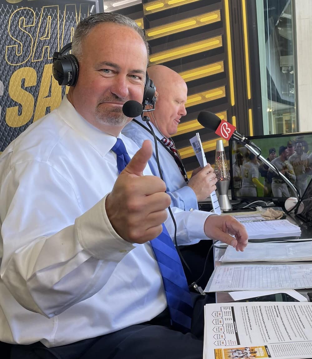 I’m sure there are as many “favorite calls” made by Orsillo and Grant as there are fans. For many, the best part of listening to their broadcasts is the banter between the two and not necessarily big plays or spectacular moments. But I selected one to revisit because I think it captures a bit of each broadcaster’s talent and personality. In this clip showing the final out of Joe Musgrove’s no-hitter on April 9, 2021, we hear Orsillo shift gears between “ground ball” and “sending the Friar Faithful into a frenzy.” We then hear Grant’s voice start to crack with emotion as he talks about a hometown kid getting the franchise’s first no-hitter. Grant has known the Musgrove family since Joe was a kid.