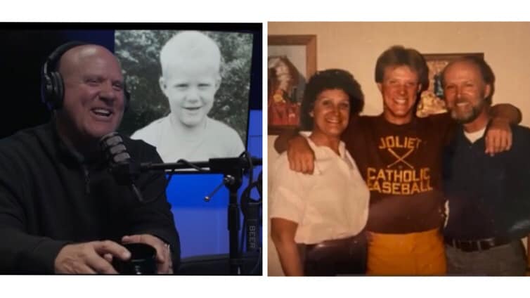 L: Mark Grant talking about his childhood; R: MLB draft day with his parents, 1981. Photos from The Other Side podcast (hosted by Carlos Castro), 6/20/21