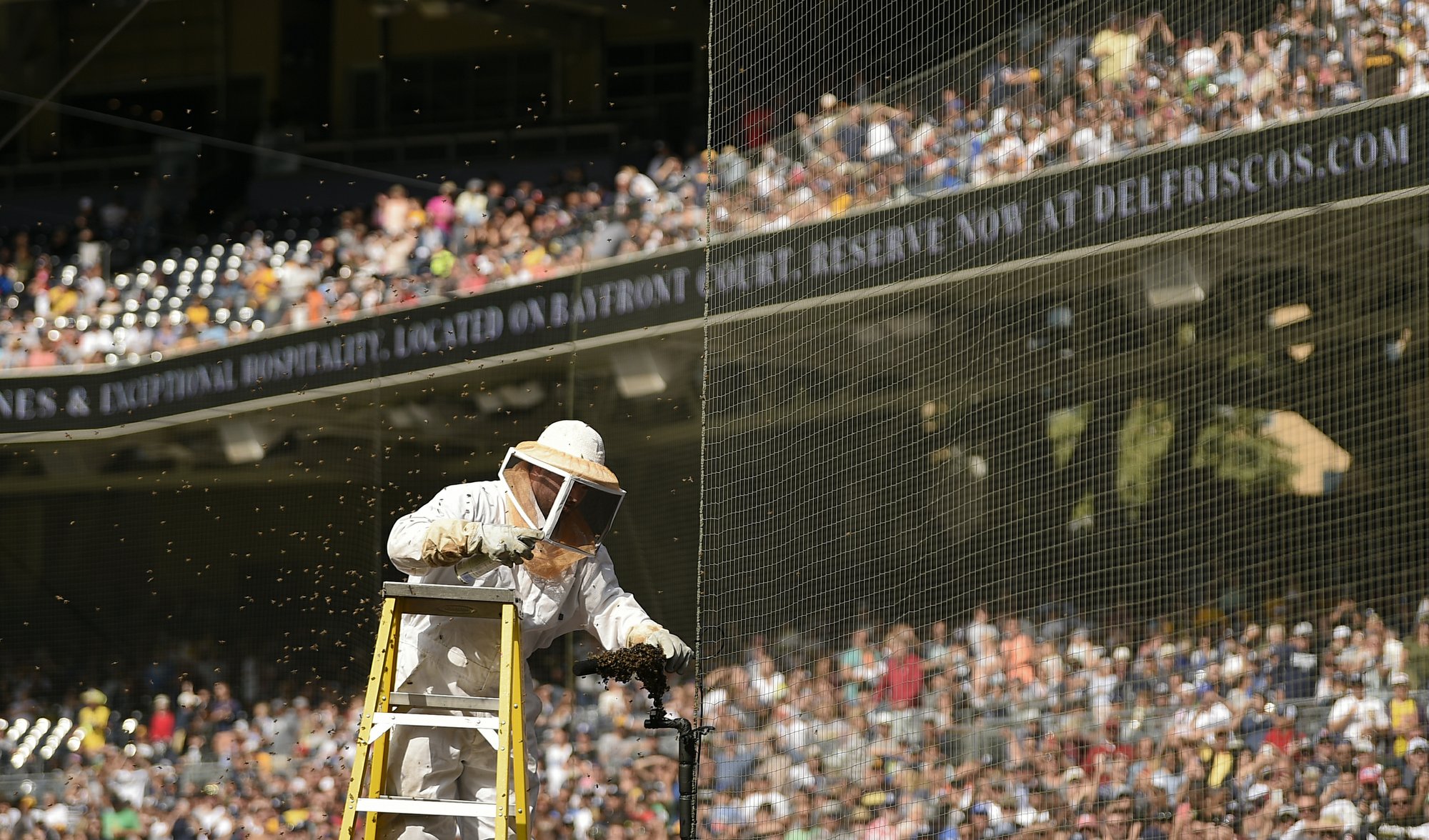 There was a 28-minute delay in the third inning because a swarm of bees descended upon the first base FOX Sports San Diego field microphone.