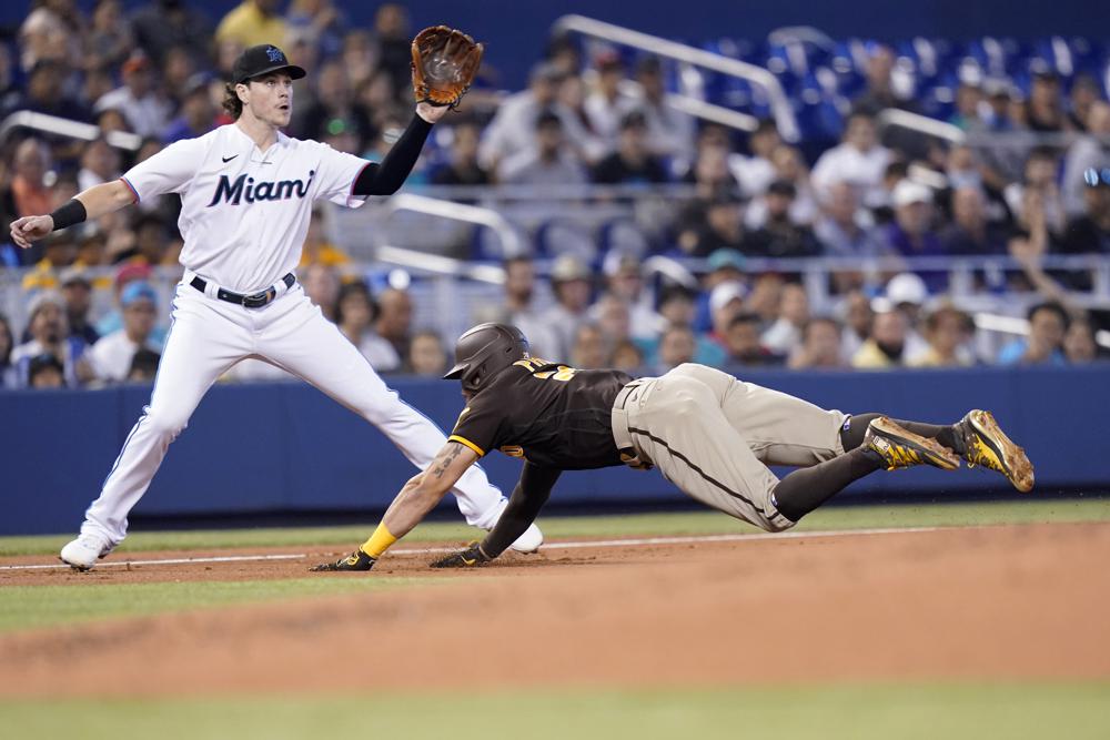 John Curtiss (3-1, 2.56) opened the bullpen game for the Marlins with one scoreless, hitless inning while striking out two. Tommy Pham scored on a Eric Hosmer single in the second inning. Manny Machado hit a solo home run in the fourth inning. Brian O’Grady hit a pinch-hit solo home run in the ninth inning.
