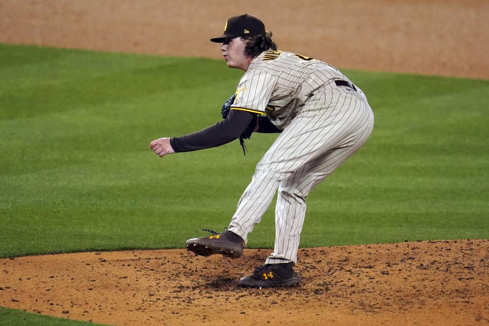 Walker Buehler (1-0, 2.16) gave up two runs on four hits and no walks while striking out nine over seven innings. Fernando Tatis Jr. scored on a single by Manny Machado in the fourth inning. Trent Grisham hit a solo home run in the sixth inning. Tatis Jr. ground into a double play however Jurickson Profar scored in the eighth inning.